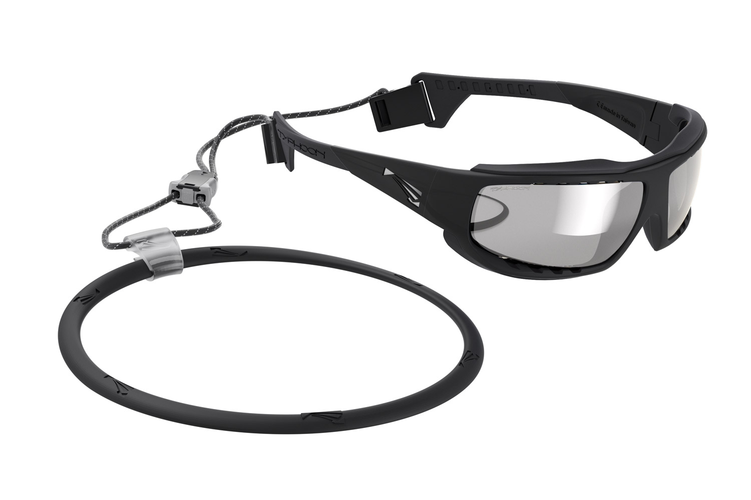 Очки комплектуются силиконовым кольцом, которое одевается на шею. К нему крепится ремешок закрепленный к очкам. Это предотвращает возможность в случае падения или другой непредвиденной ситуации потерять очки.