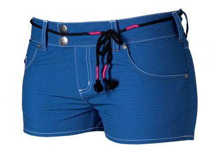 Женские стрейчевые шорты для повседневной носки Mystic Amphibian 2.0. Синяя ткань стилизированна под джинс, с белой строчкой.